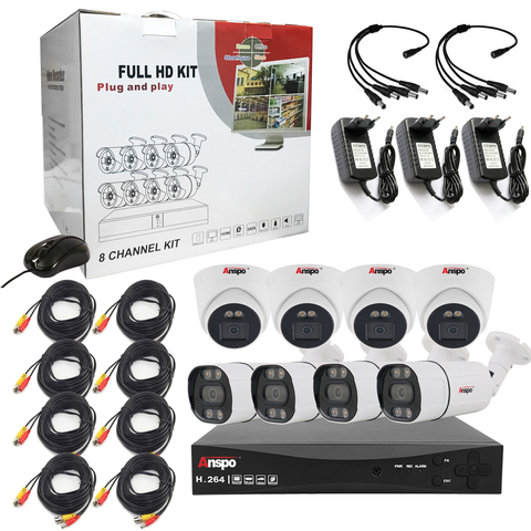 Anspo CCTV Hệ thống camera 8 kênh 4CH 16CH AHD 1080p Camera An Ninh với 2MP DVR bộ hoàn chỉnh ngoài trời trong nhà không thấm nước P2P